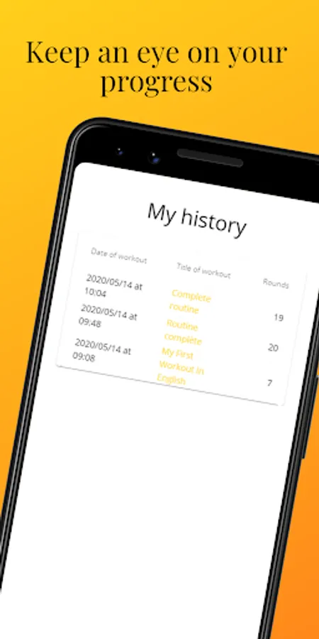 - 😍 Visualize your progress: Thanks to the history which records your workouts, you can retry a workout when you want and compare your data.