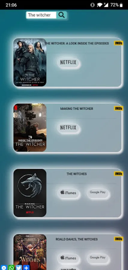 Aggregation of links form official videos on demand services sush as netflik Amazone Prime, Apple+, DIsney+... For movies and tv show