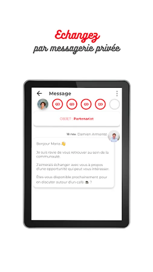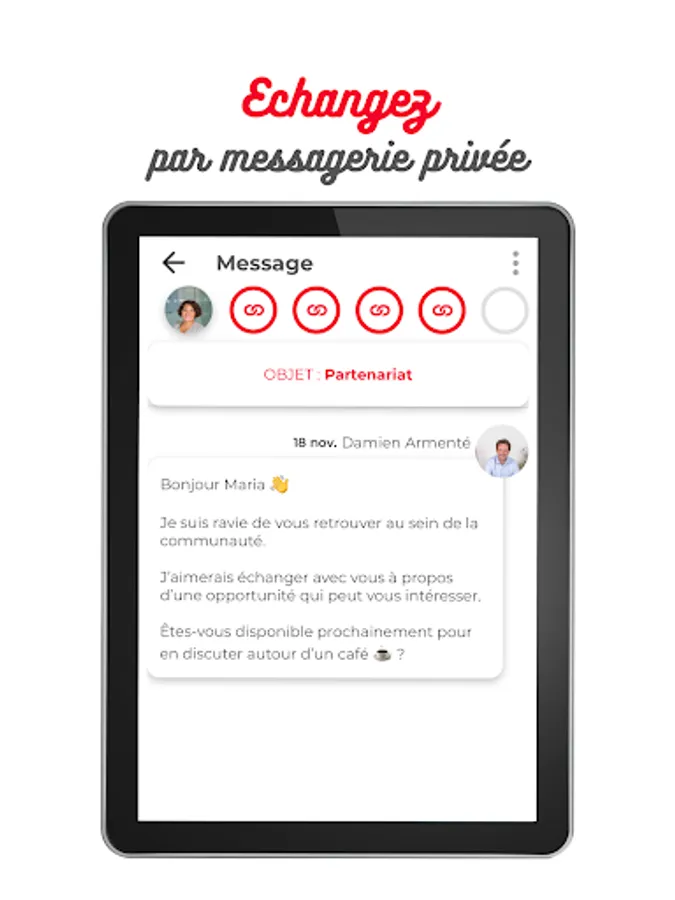 Simplified connection. Quickly connect a member of the community you want to help, recommend or co-opt. The best way to help each other through the power of community.