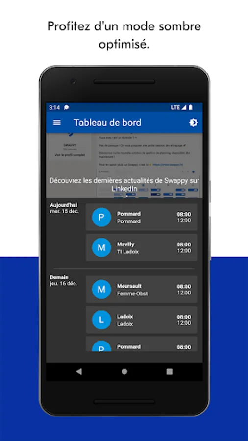 In just a few clicks, Swappy allows you to obtain an optimized schedule, after having taken into account the constraints of your establishment as well as those of your team.