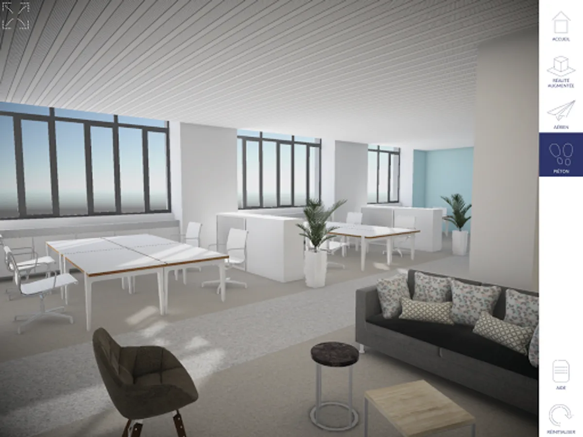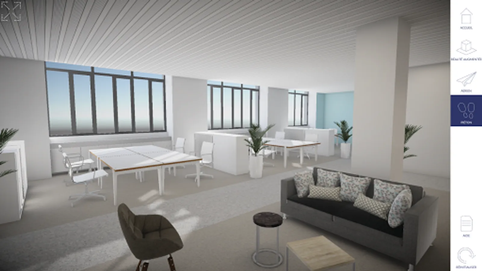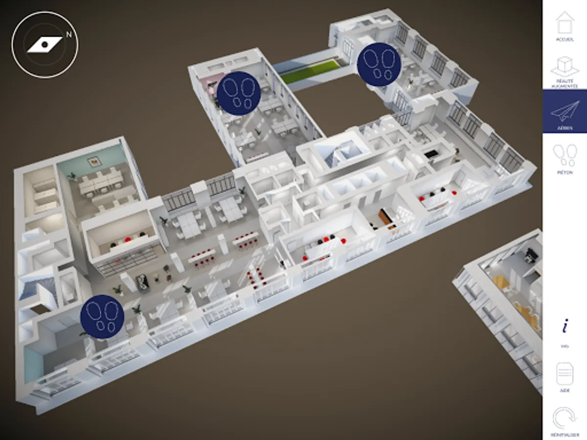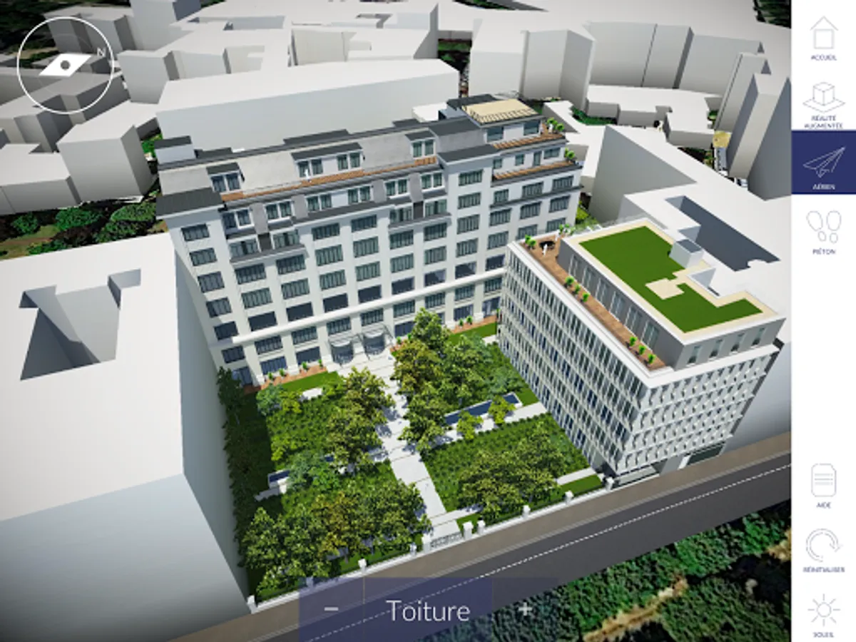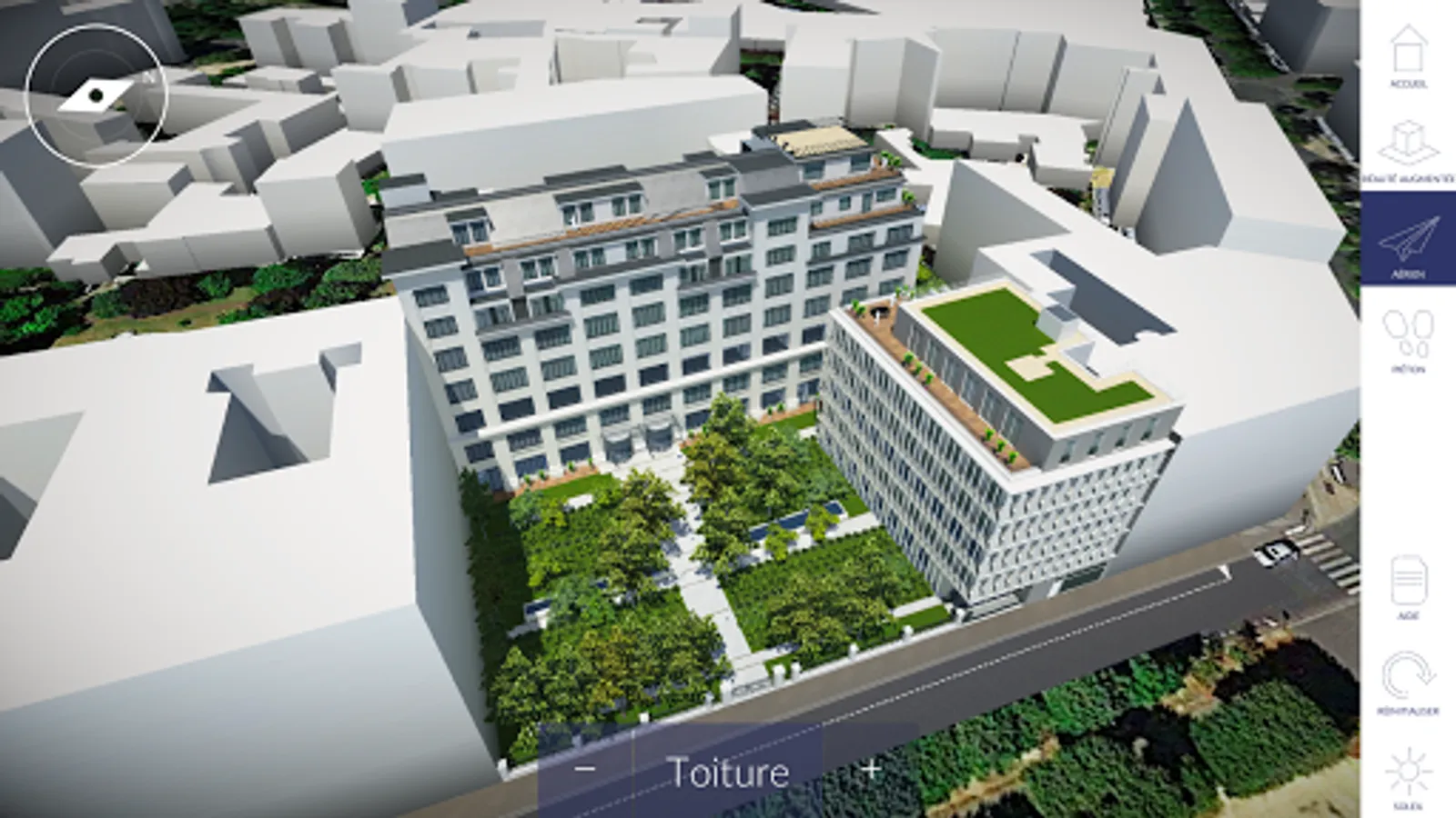 The application allows you to view the entire program and combines augmented reality, orbital views, architectural perspectives.