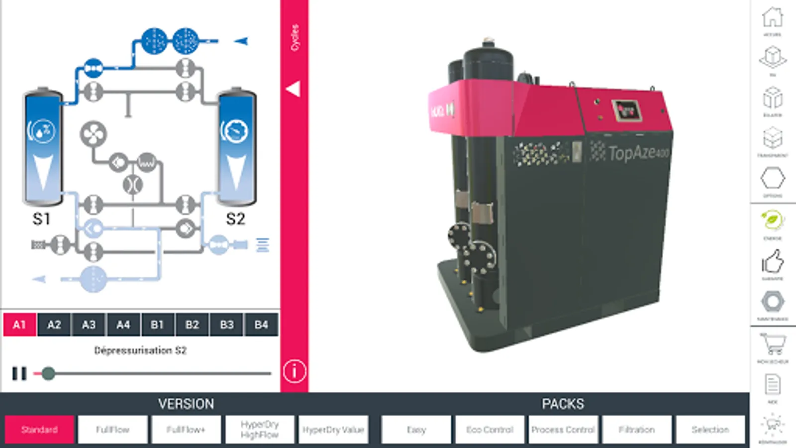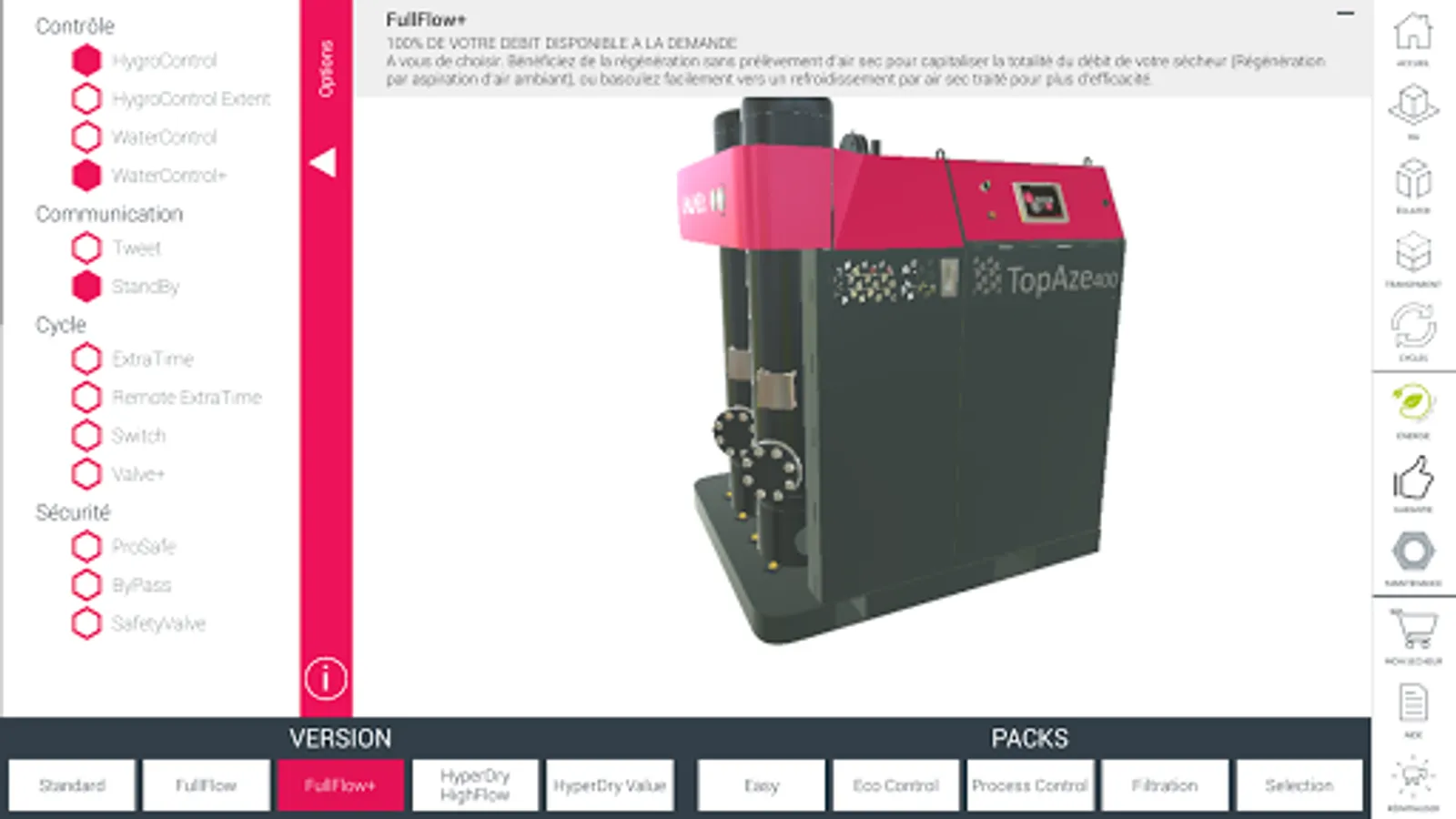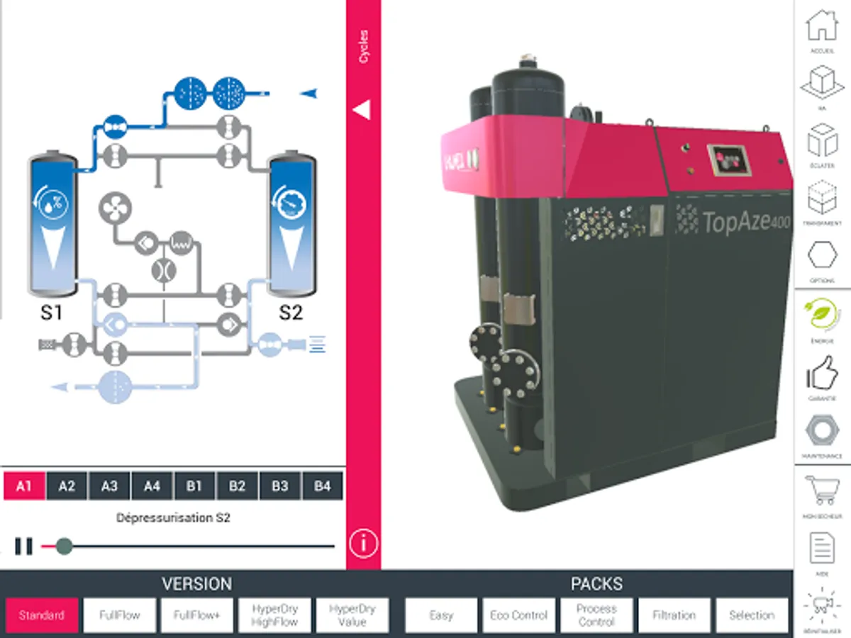 Immerse yourself in 3D and augmented reality to discover our range topaz, Dryer Adsorption. Equip your dryer filters, open the door to see maintenance areas, choose your options. Once your selection is made, register your product plug to complete your request. Our agents are at your disposal if you want a fully personalized offer adapted to your needs. Also Browse the CHAUMECA application to discover other features and our offer. A scalable tool, interactive and complete. www.chaumeca.com