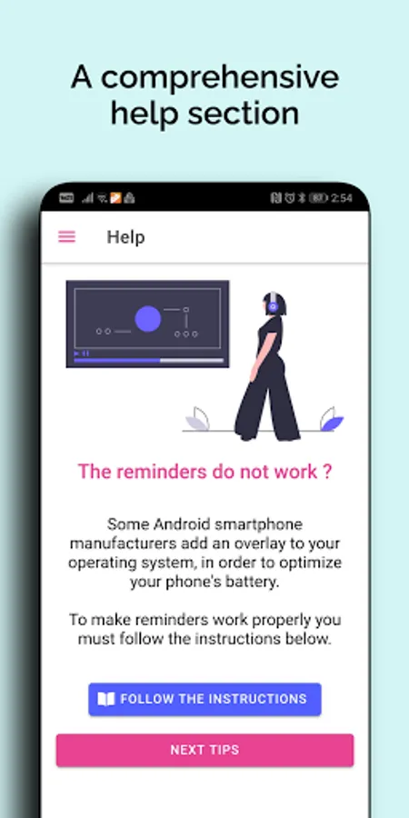 Antiviruses or task killers can interfere with the proper functioning of application reminders. In the event of a malfunction, we are not responsible for any forgetting of the contraceptive pill.