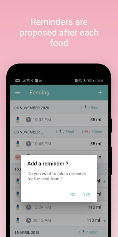 The app proposes local reminders in order to avoid baby bottle forgetting.