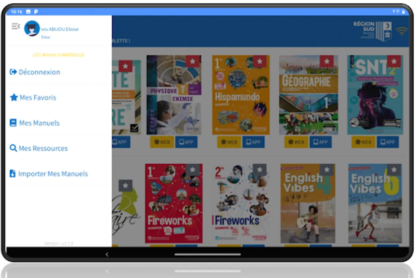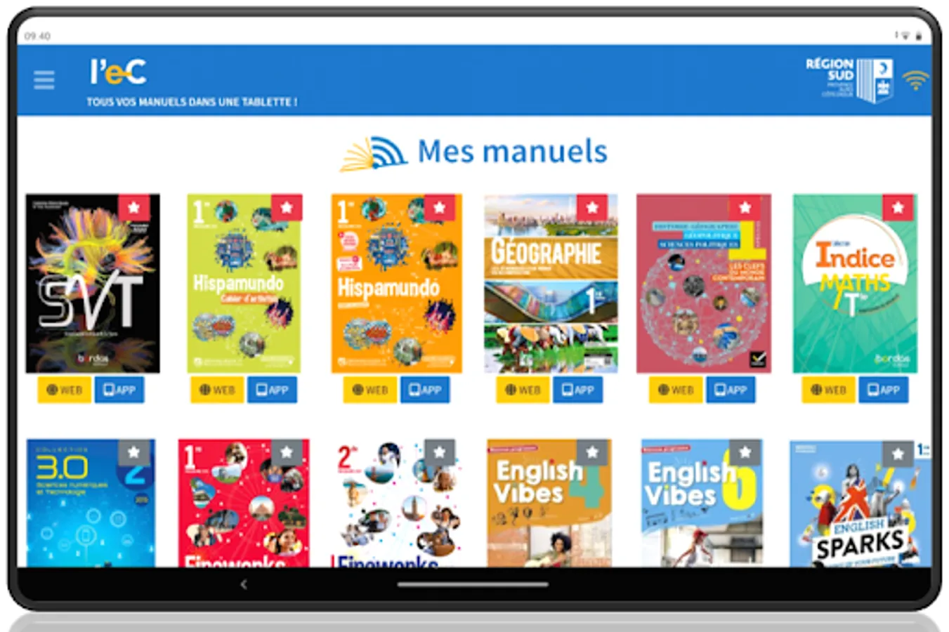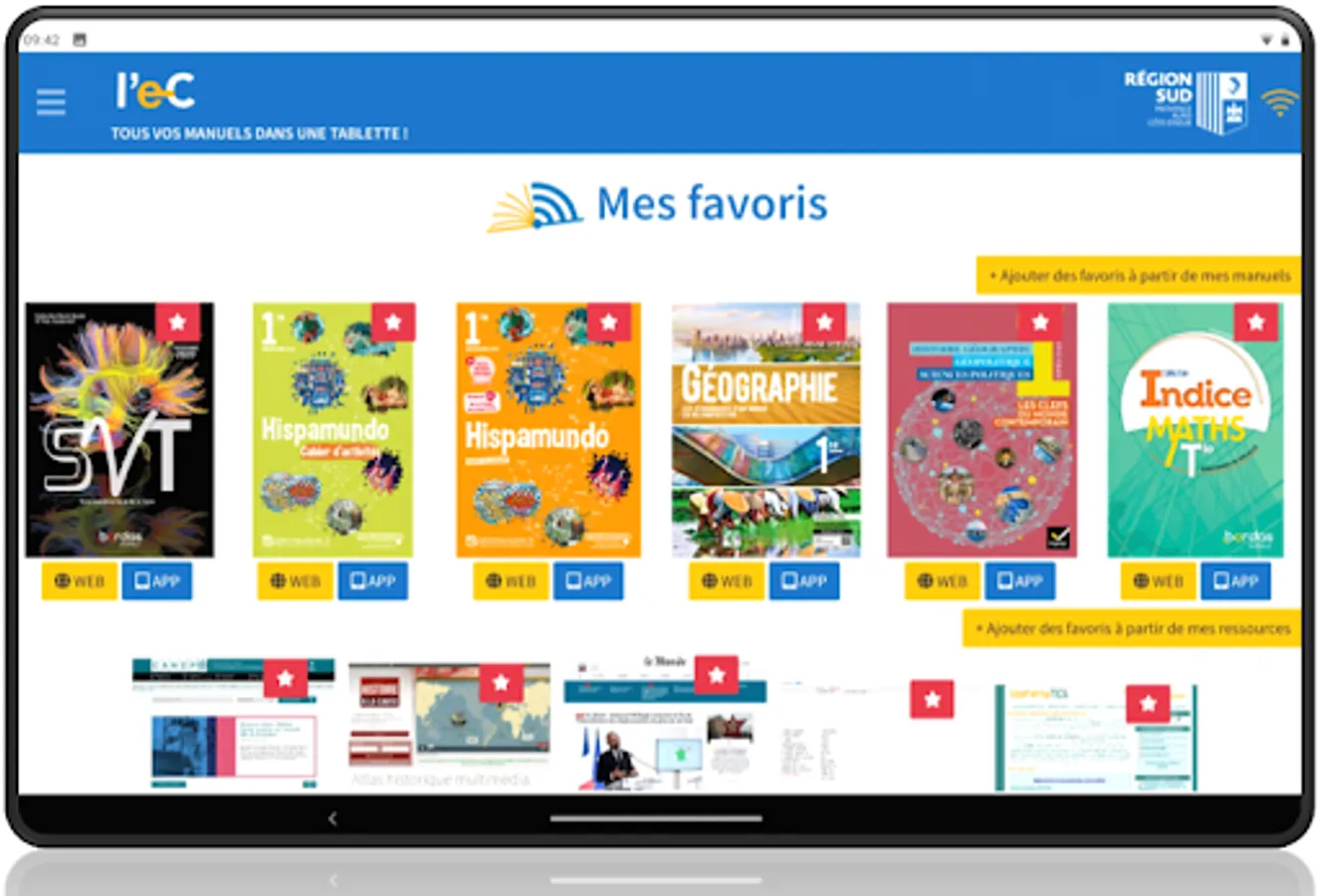 The e-C South Region Android application is a content aggregator specially designed for high school students in the South Region. This application provides direct and centralized access to digital student and teacher textbooks. All you need to do is authenticate using the identifiers of your ENT Atrium Sud to find your manuals in digital version, accessible with or without an internet connection.