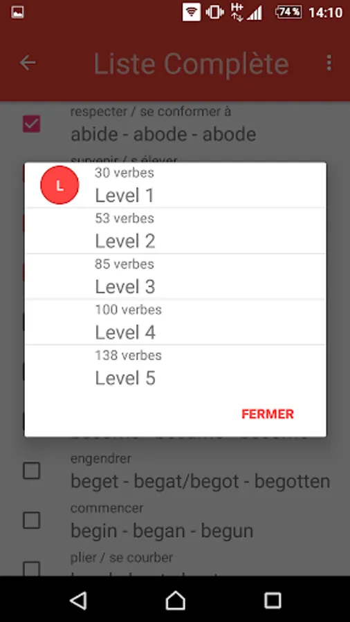 Test your knowledge easily and effectively on all verbs or just your personal verb list.