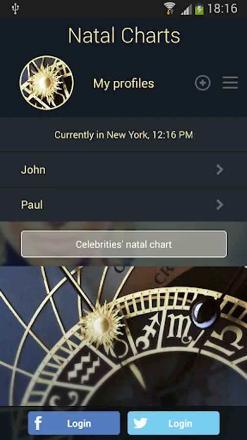 The Natal Chart application is intuitive and easy to use. You can handle several profiles at the same time: yours, those of your romantic partners, friends, family and professional contacts. The Sky map, also known as star chart or star map, is an essential help for all those wishing to learn more about themselves and to overcome some blocks, as well as to learn how to act with the others.
