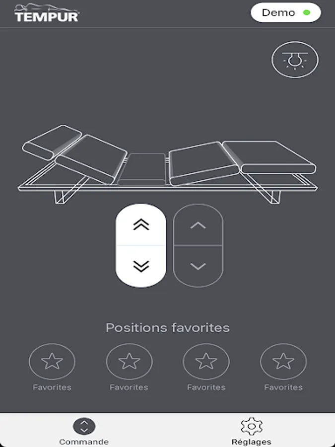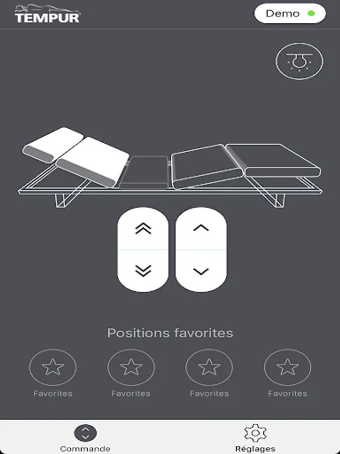 Vous pourrez ainsi mémoriser jusqu'à 4 positions favorites, ou encore utiliser la fonction veilleuse pour profiter au mieux de votre sommier de relaxation TEMPUR®.