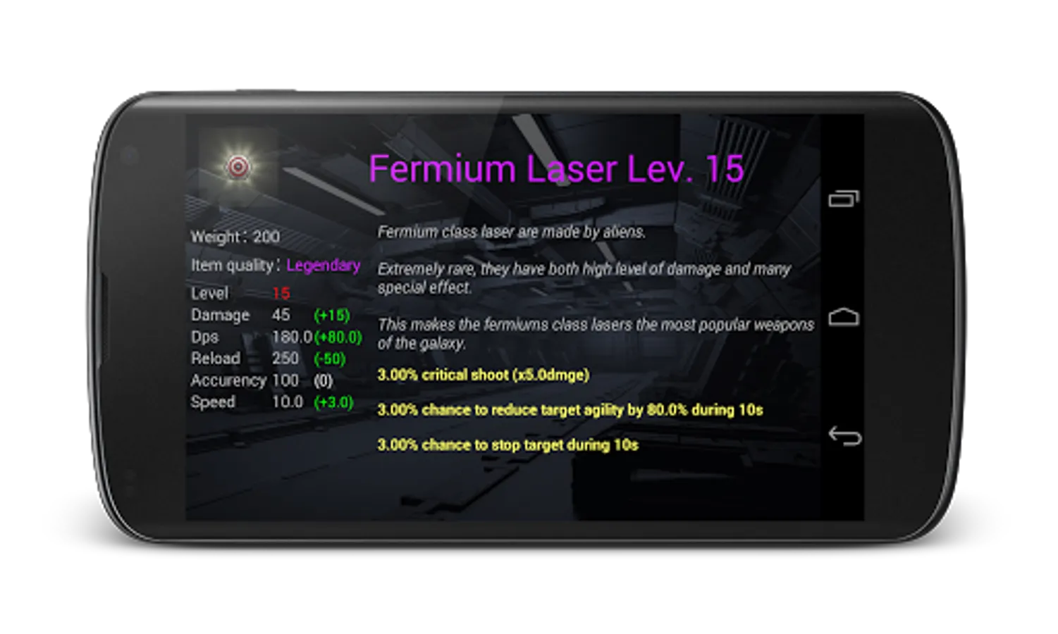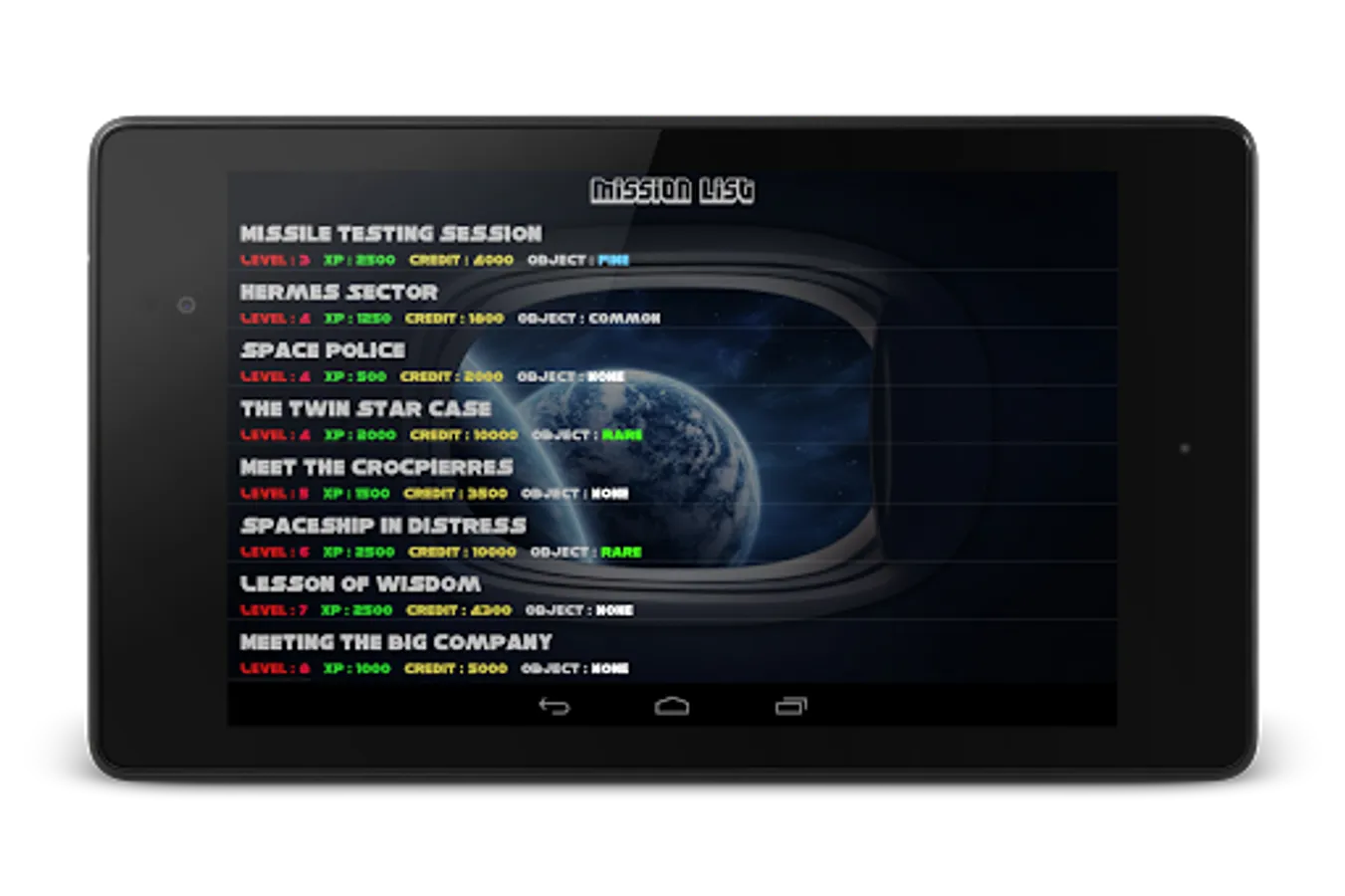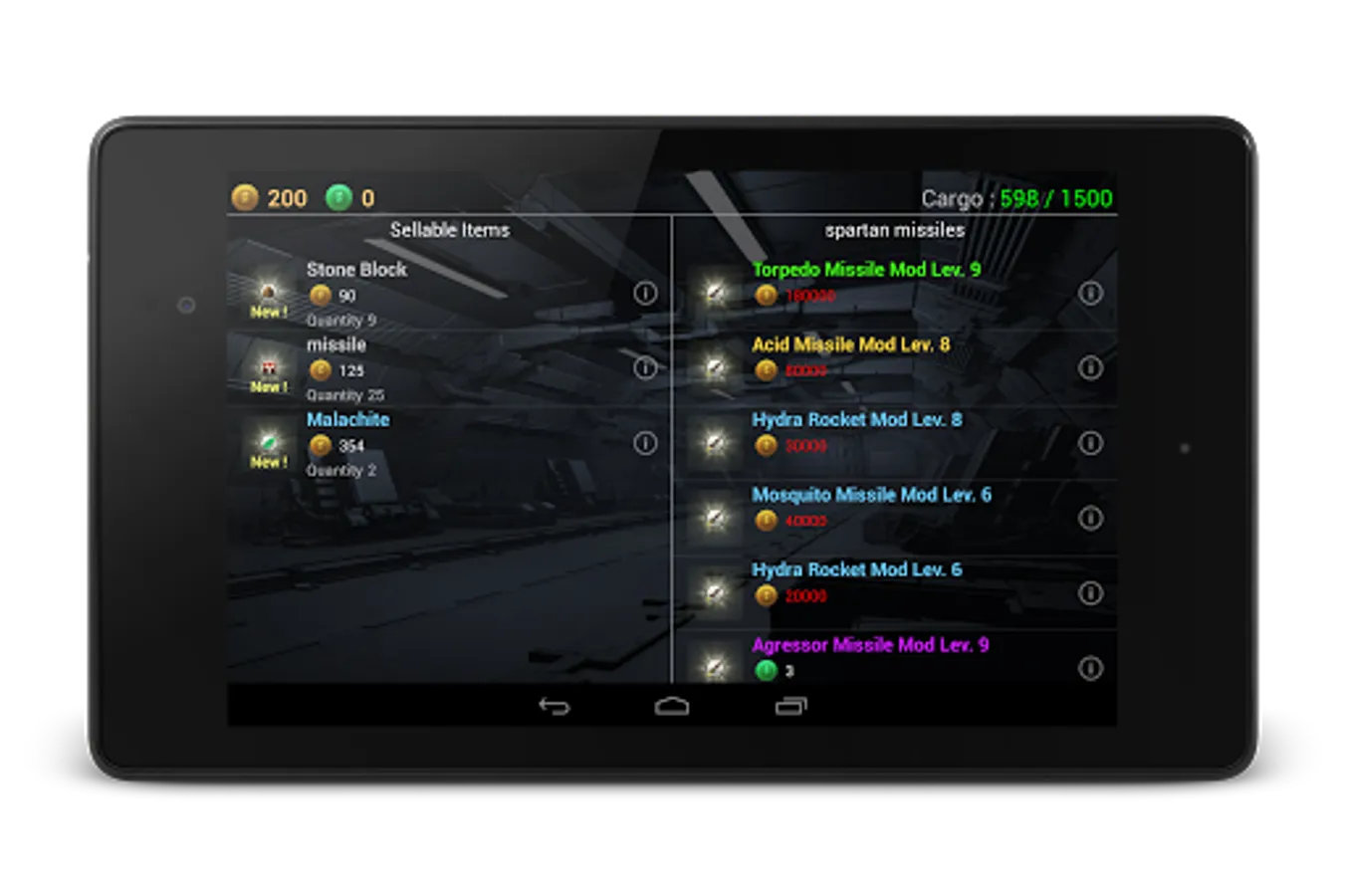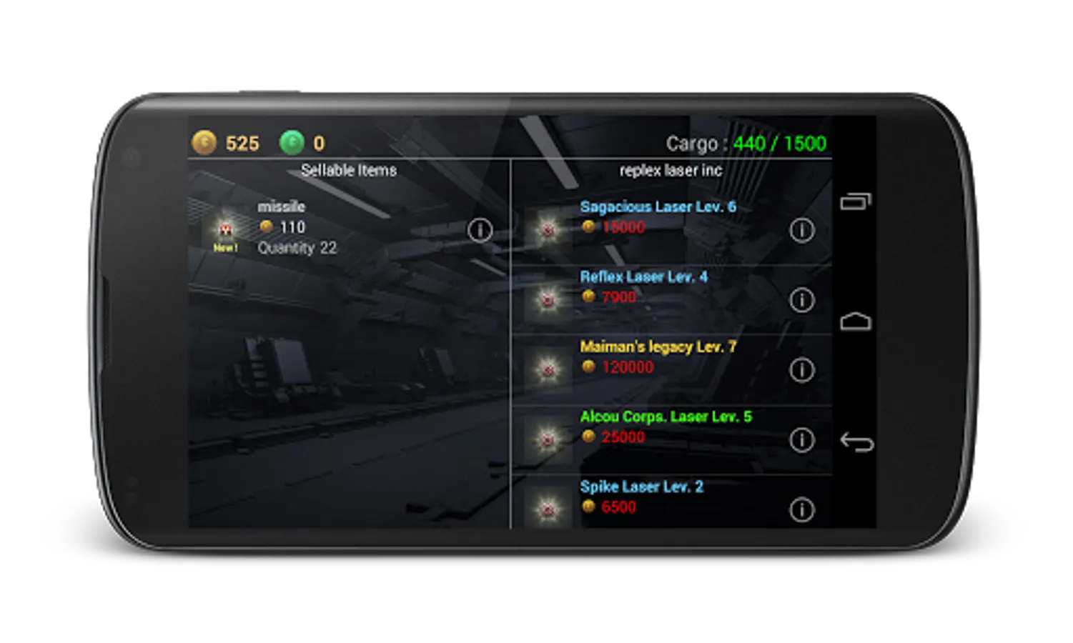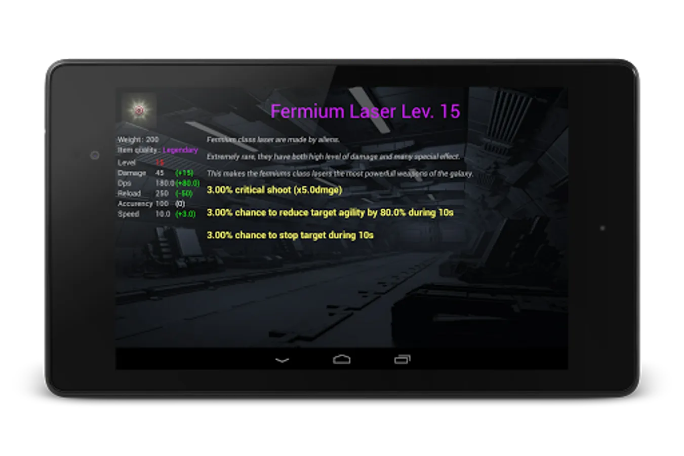 - Improve your spaceship (laser, shield, missiles, hyperdrive engine, booster, ...)
