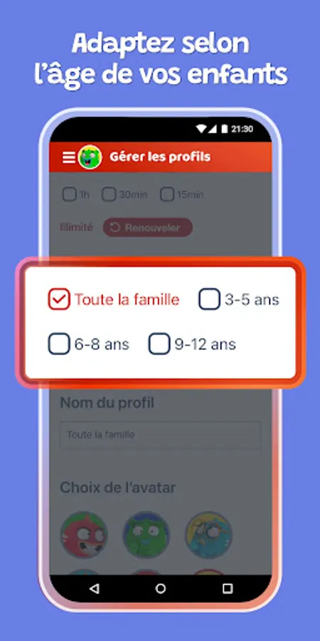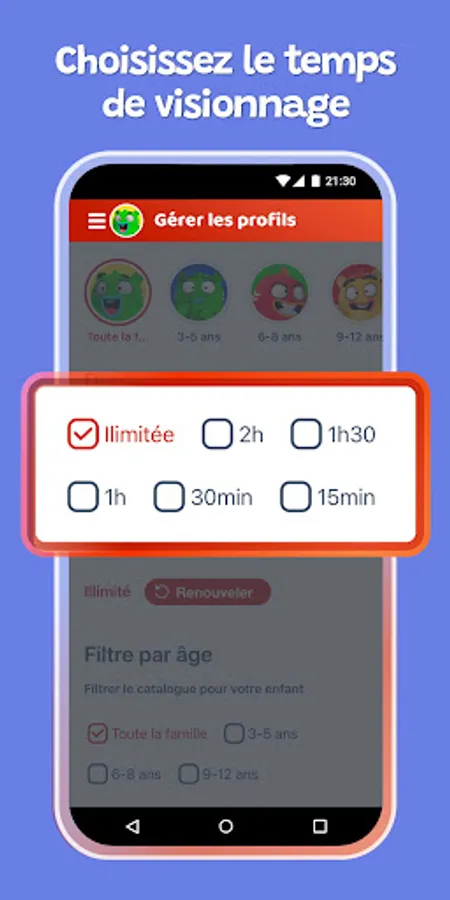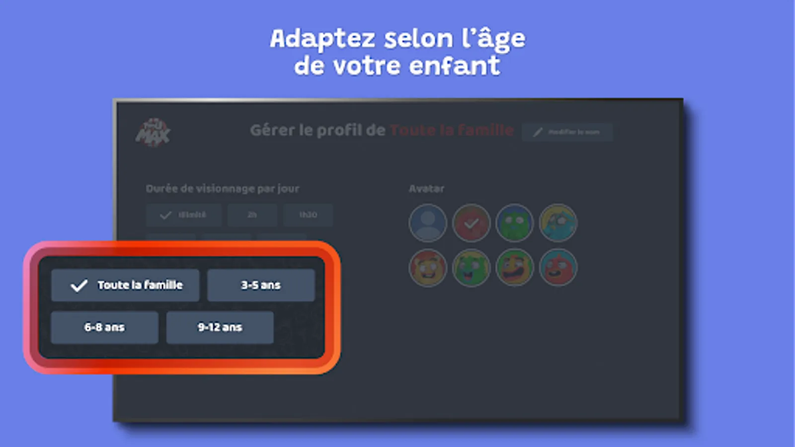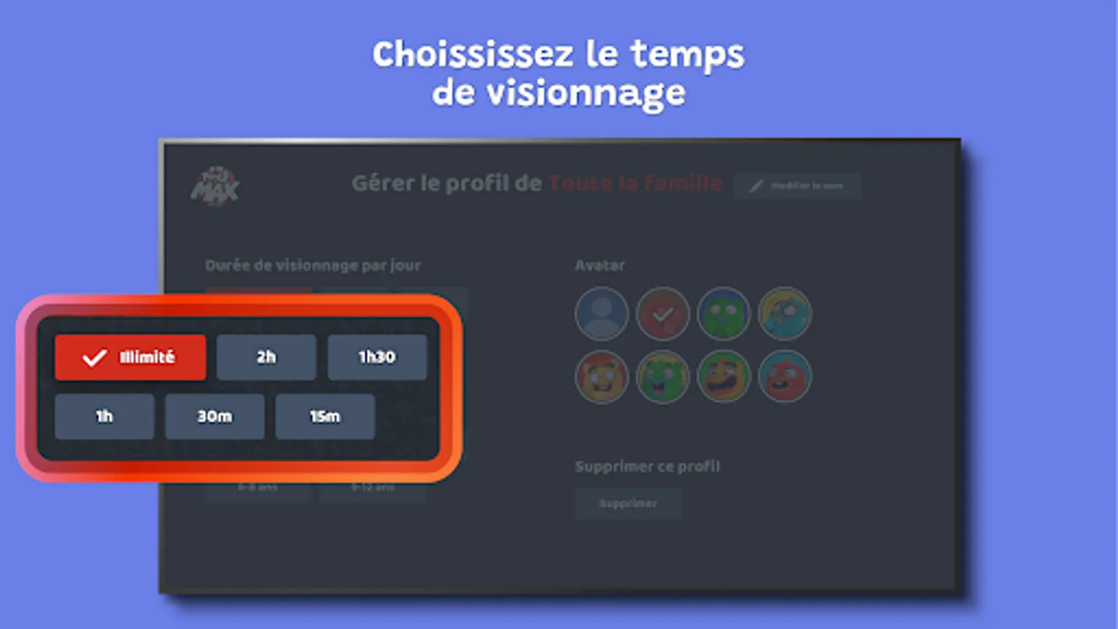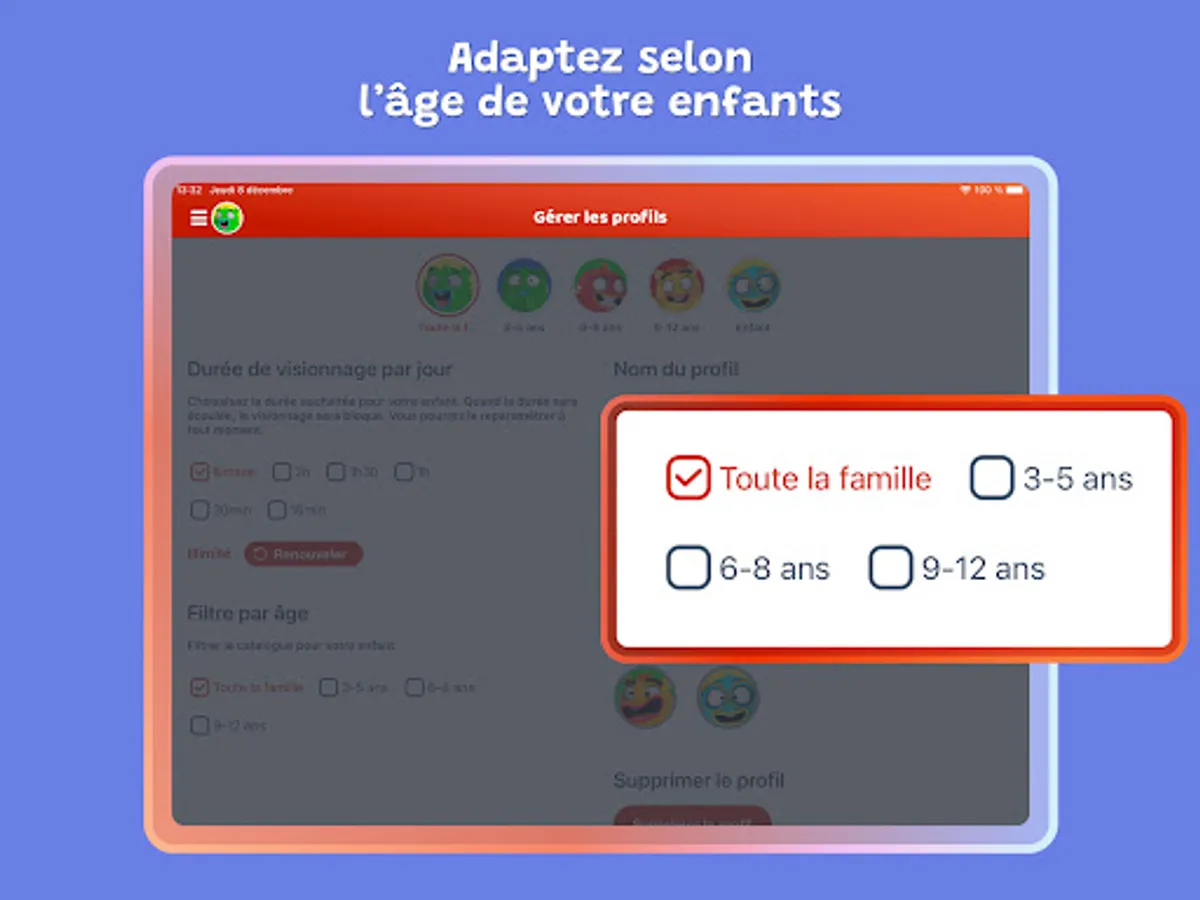 • parents are invited to create profiles allowing them to set a viewing time limit and filters by age group adapted to their children