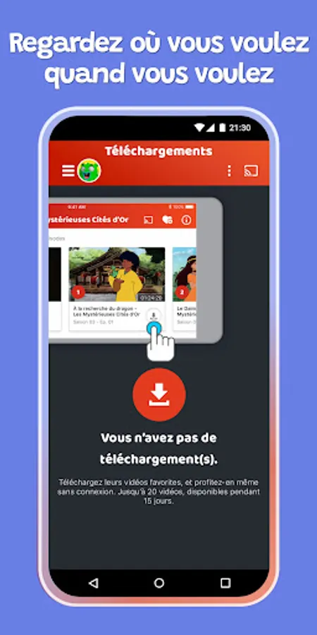 • Offline mode: download all your videos to view them wherever you want, even without an internet connection.