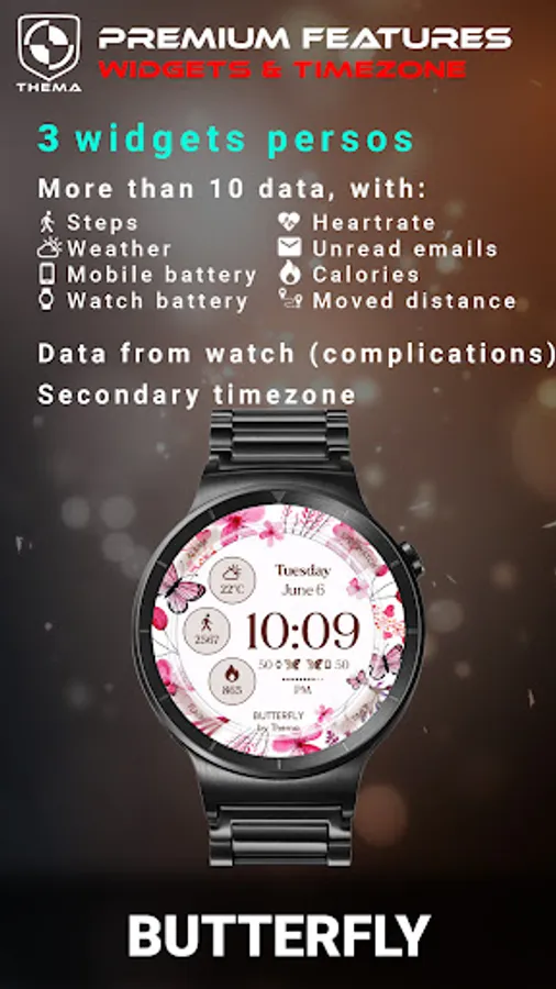 + Choose between up to 8 indicators (Daily step count, Heartbeat frequency, Unread Email from Gmail, etc...)