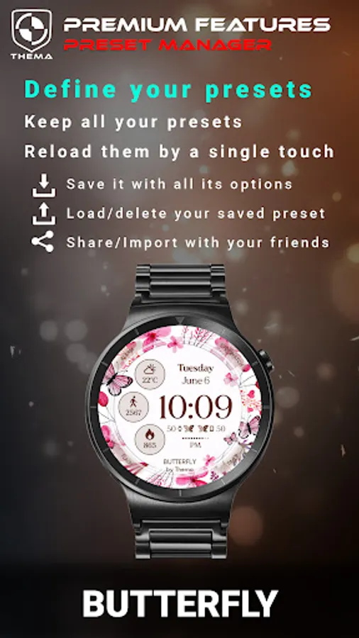 + Save your preset with all its options (colors, backgrounds, data, features. EVERYTHING is saved!)