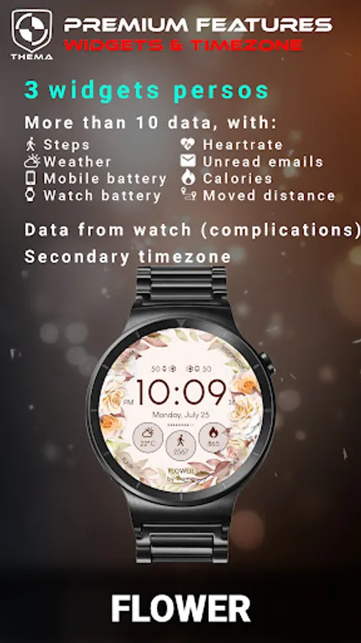 + Choose between up to 8 indicators (Daily step count, Heartbeat frequency, Unread Email from Gmail, etc...)
