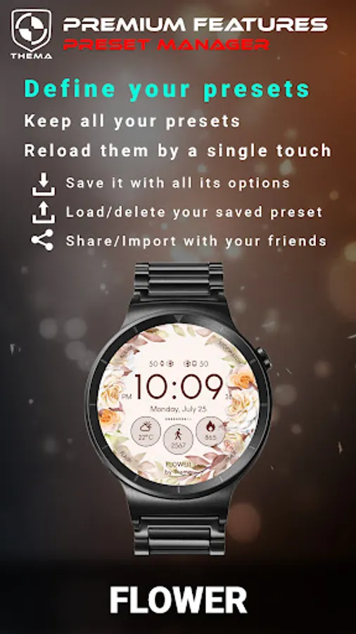 + Save your preset with all its options (colors, backgrounds, data, features. EVERYTHING is saved!)