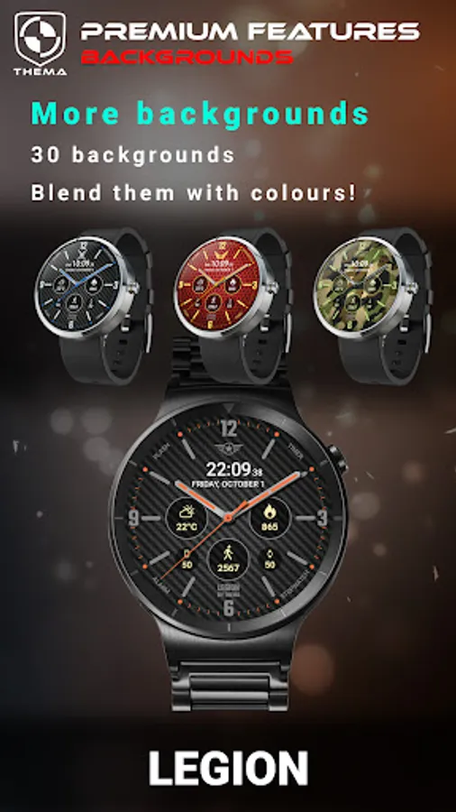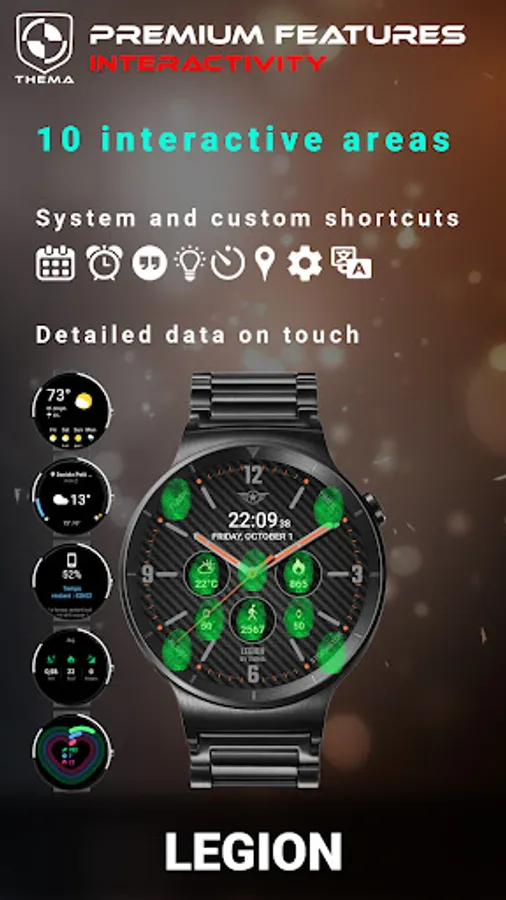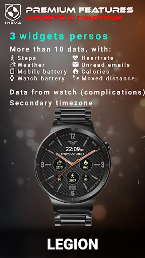 + Choose between up to 8 indicators (Daily step count, Heartbeat frequency, Unread Email from Gmail, etc...)