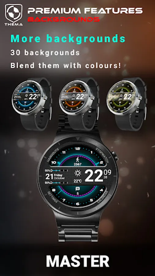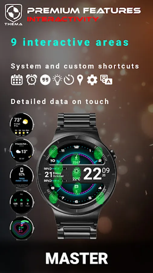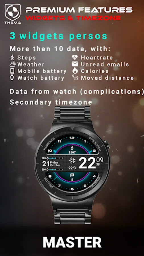 + Choose between up to 8 indicators (Daily step count, Heartbeat frequency, Unread Email from Gmail, etc...)
