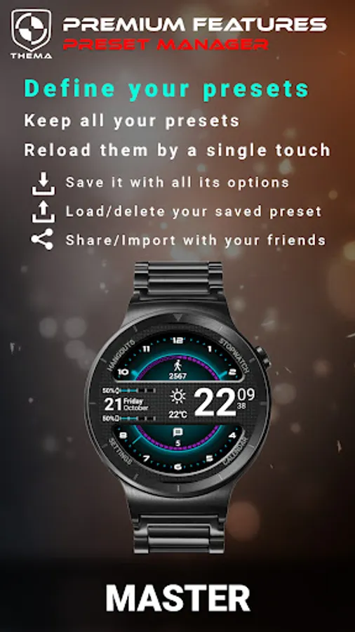 + Save your preset with all its options (colors, backgrounds, data, features. EVERYTHING is saved!)