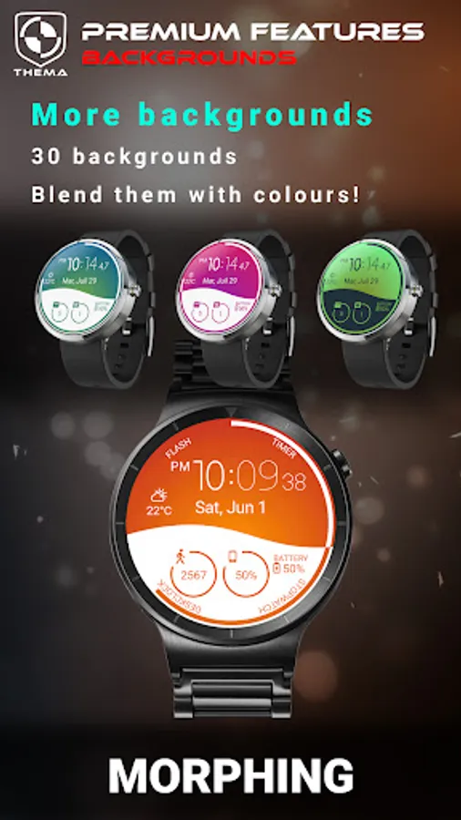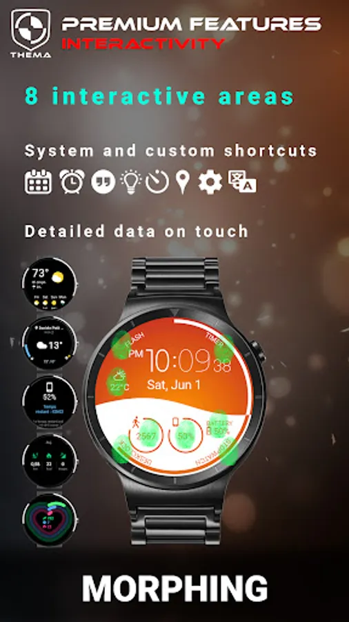 + Choose between up to 8 indicators (Daily step count, Heartbeat frequency, Unread Email from Gmail, etc...)