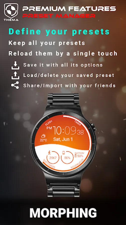 + Save your preset with all its options (colors, backgrounds, data, features. EVERYTHING is saved!)