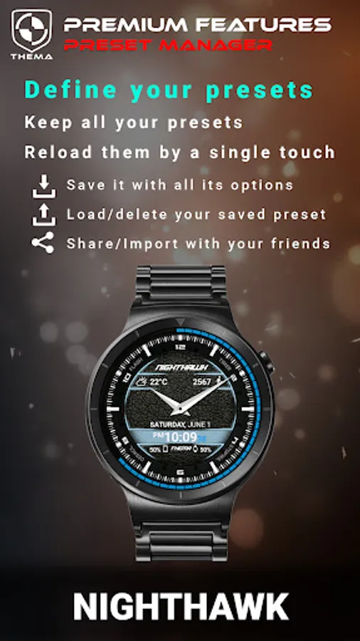 + Save your preset with all its options (colors, backgrounds, data, features. EVERYTHING is saved!)