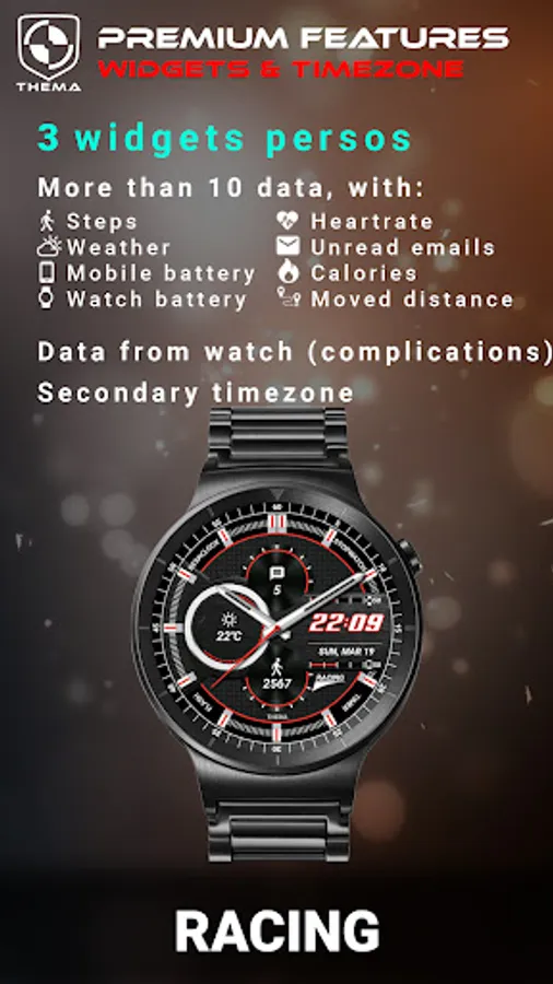 ★ Features of Racing Watch Face ★