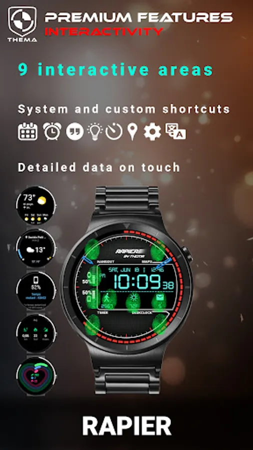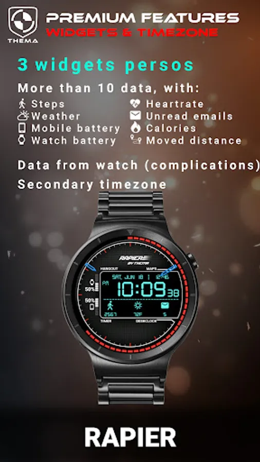 + Choose between up to 8 indicators (Daily step count, Heartbeat frequency, Unread Email from Gmail, etc...)