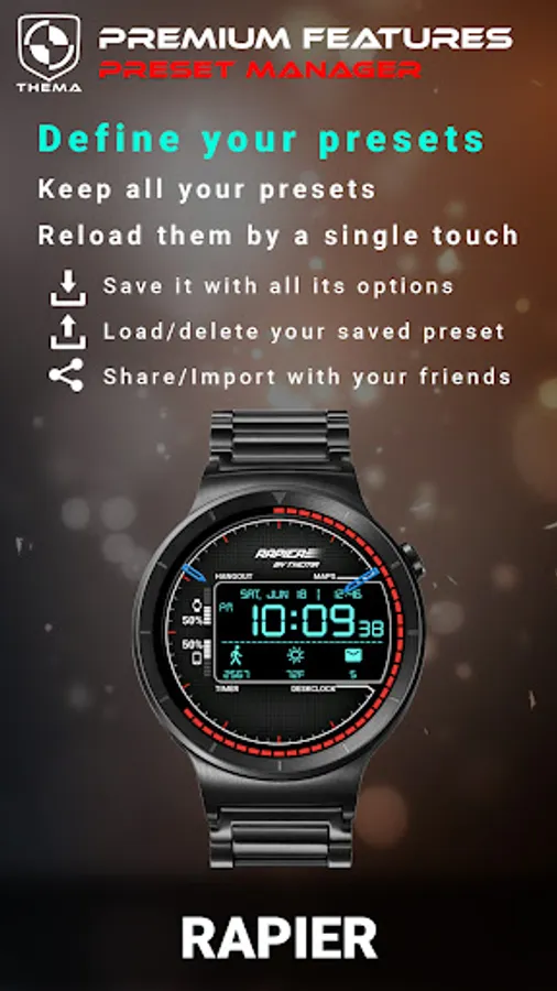 + Save your preset with all its options (colors, backgrounds, data, features. EVERYTHING is saved!)