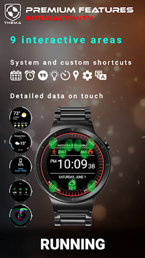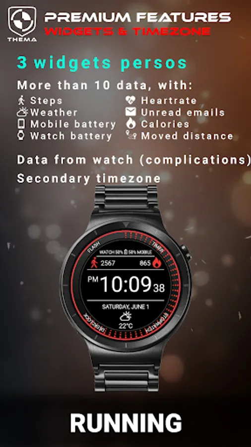 + Choose between up to 8 indicators (Daily step count, Heartbeat frequency, Unread Email from Gmail, etc...)