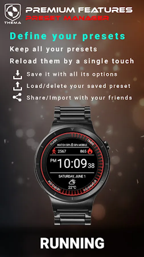 + Save your preset with all its options (colors, data, features. EVERYTHING is saved!)
