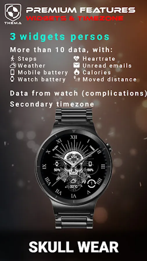 + Choose between up to 8 indicators (Daily step count, Heartbeat frequency, Unread Email from Gmail, etc...)