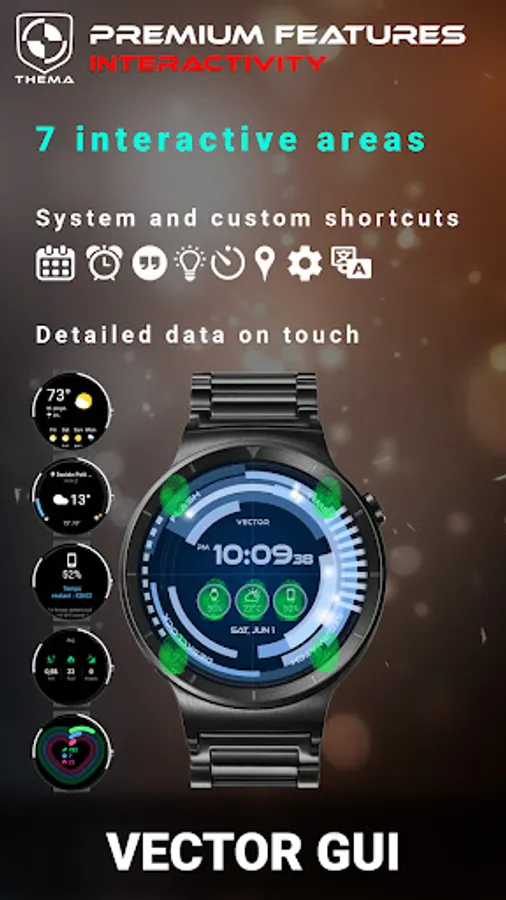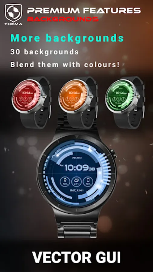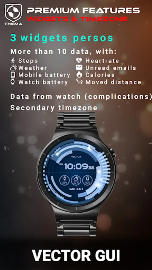 + Choose between up to 8 indicators (Daily step count, Heartbeat frequency, Unread Email from Gmail, etc...)