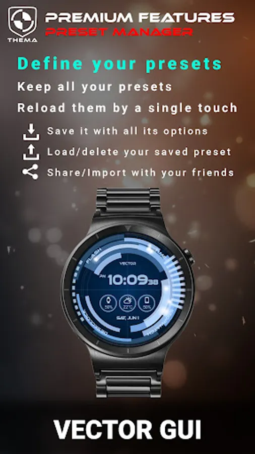 + Save your preset with all its options (colors, backgrounds, data, features. EVERYTHING is saved!)