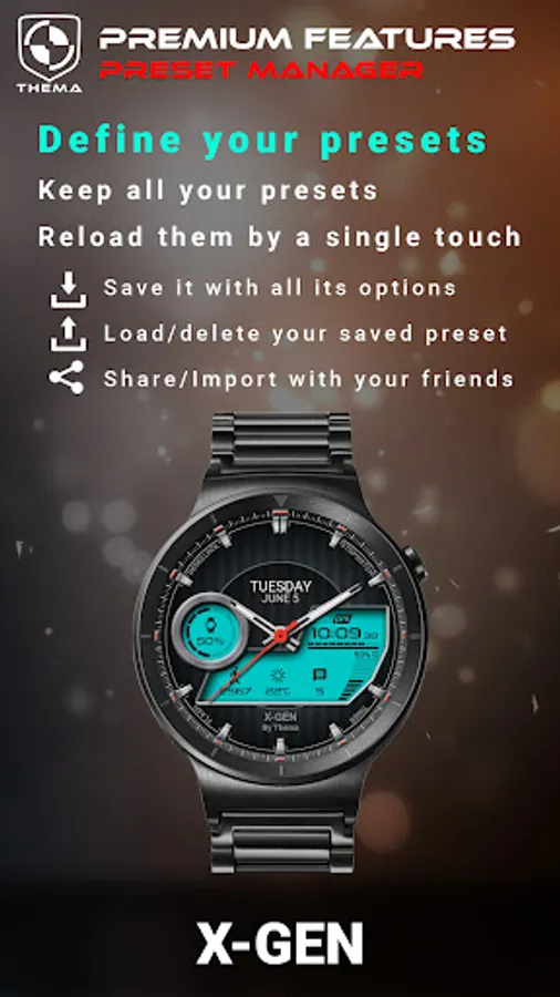 + Save your preset with all its options (colors, backgrounds, data, features. EVERYTHING is saved!)