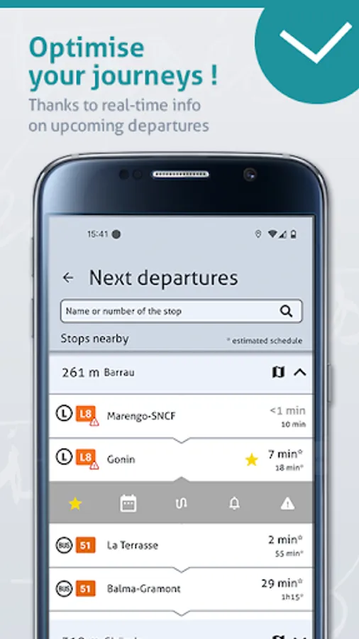 - Next departures: wherever you are, get real-time information about the times of the next departures on the lines you are interested in.