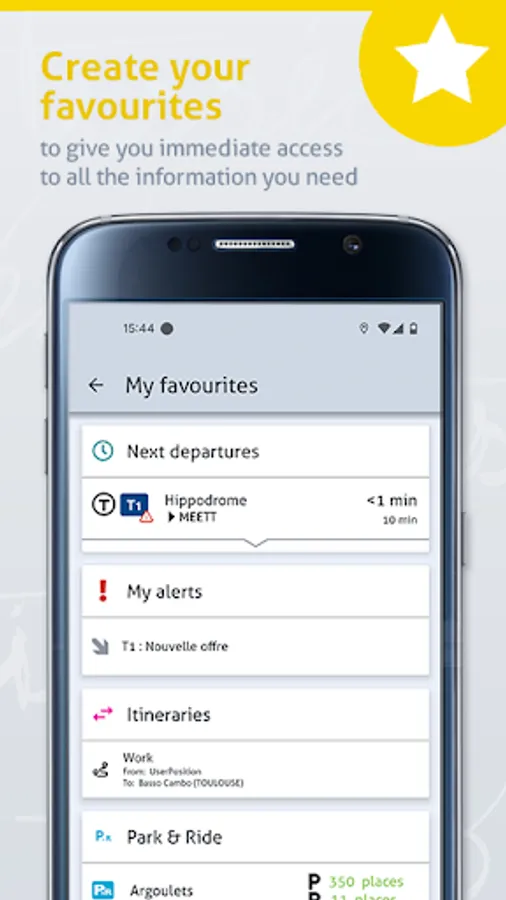 - Favourites: save your favourites to find all the information you need for your journeys in one click from the home page.