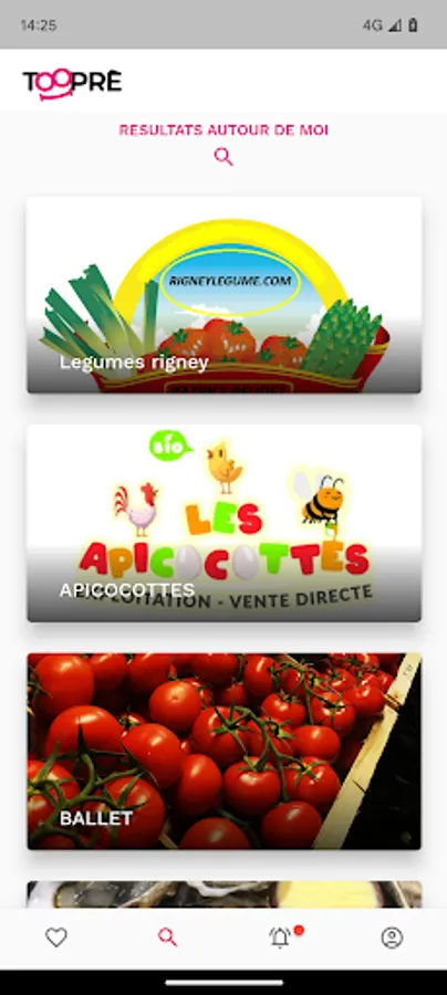 The TOOPRÈ application allows you to discover the distri-shops available around you (within a radius of 40kms) and to consult their content.