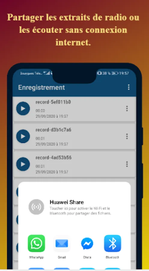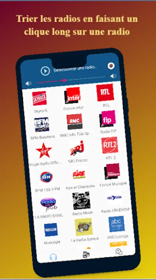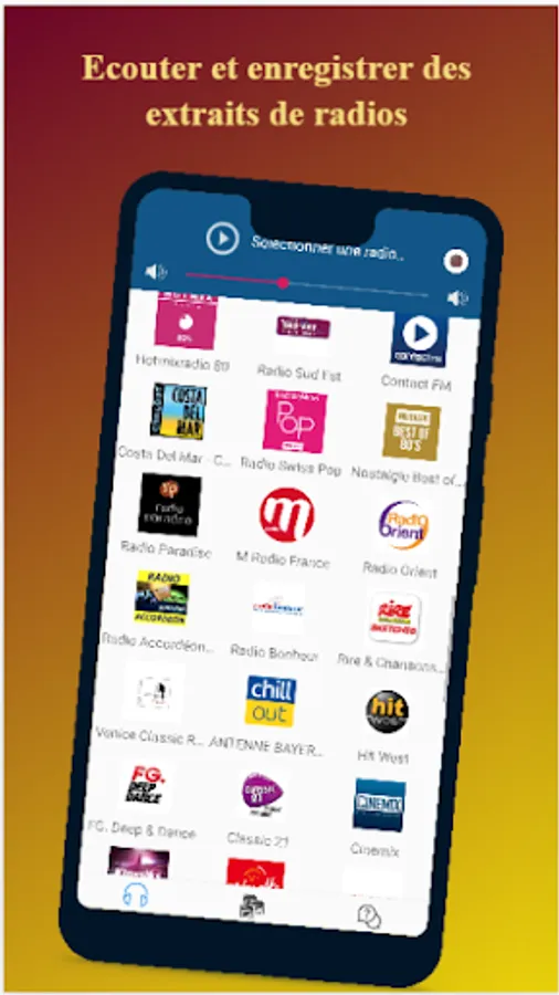 With Radio France, you can listen to the best live radio stations and follow your favorite shows for free. You can record the broadcast radios and re-listen to the recordings without having an internet connection.