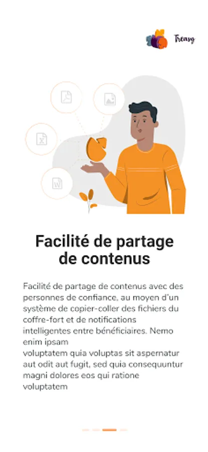 You will also discover in the application the future functionalities of Treasy. We explain everything about collaborative document sharing, the transmission of your digital assets, the Treasy optional services store ...