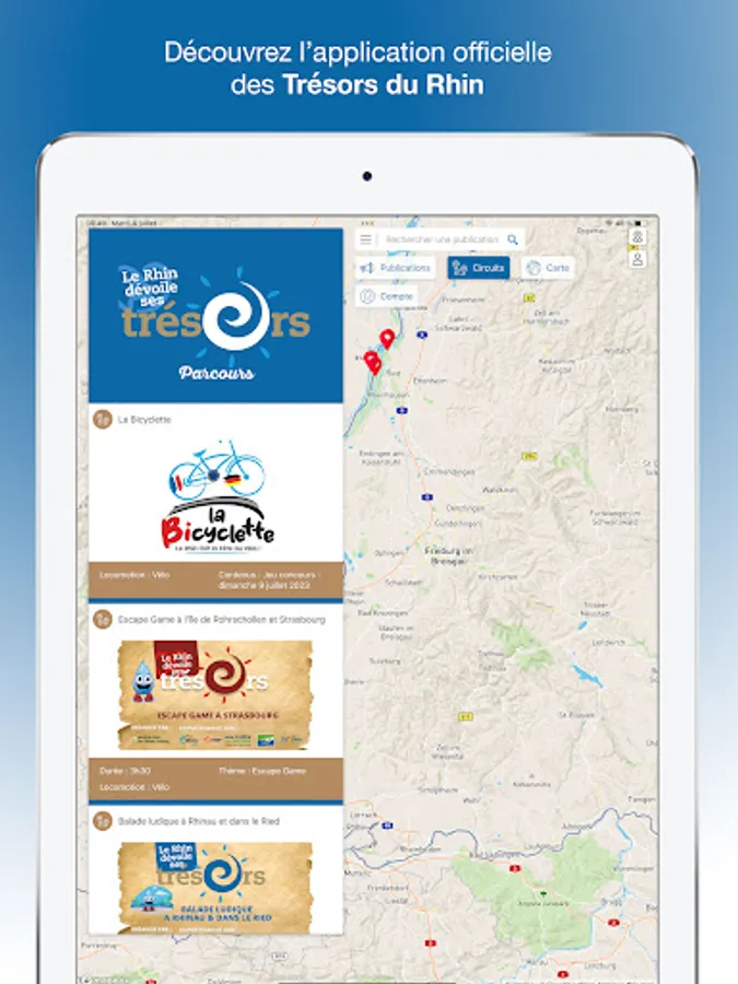 Discover or rediscover the beauty and history of the banks of the Rhine through fun and virtual routes to do alone, as a couple or as a family. Test your knowledge and your sense of observation throughout your journeys either by bike or in sneakers. In globe-trotting mode, open-air escape game, adventurer in the debate of a lock or in search of caches, you will do tourism differently!