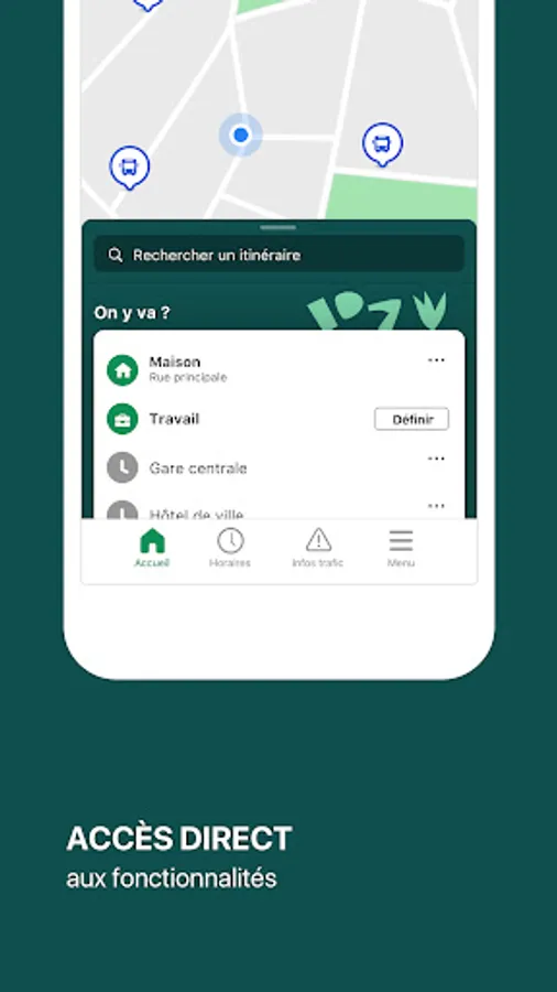 - Save favorite destinations (work, home, gym, etc.), stations and stations in 1 click