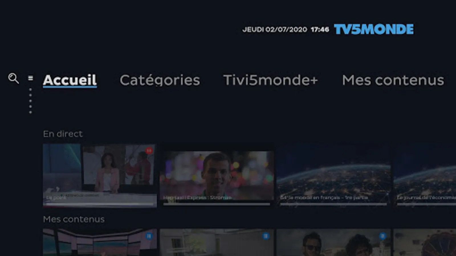 Indulge in the whole universe of TV5MONDE for free on your AndroidTV whether live or in Replay: