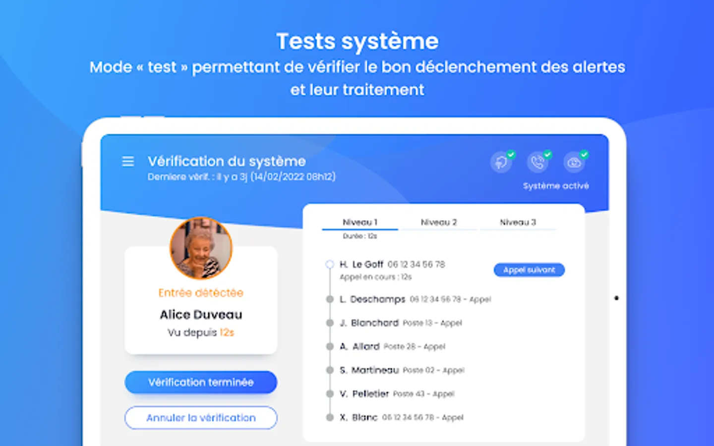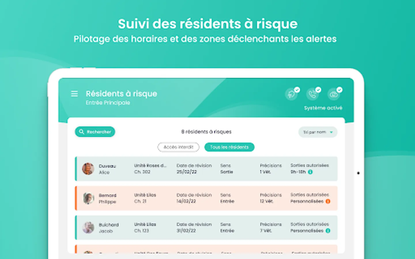 This software is accompanied by the physical equipment of the Alert Zones, installed by Ubiquid teams at the establishment's request.