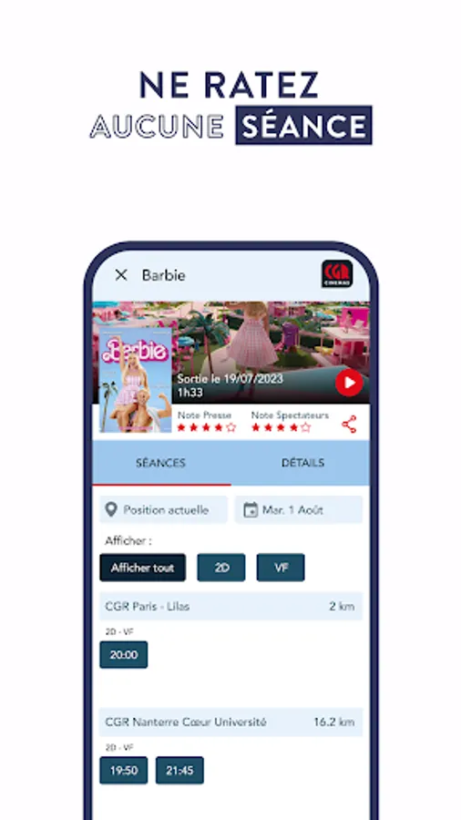 Find every moment all the information your CGR cinema and buy your tickets directly on your Smartphone!