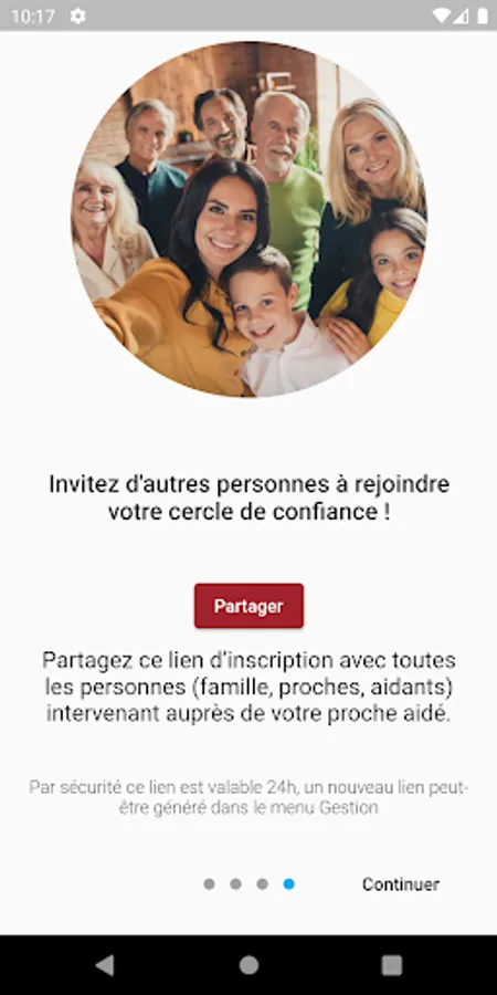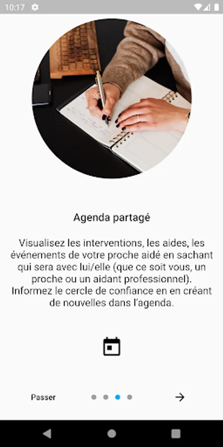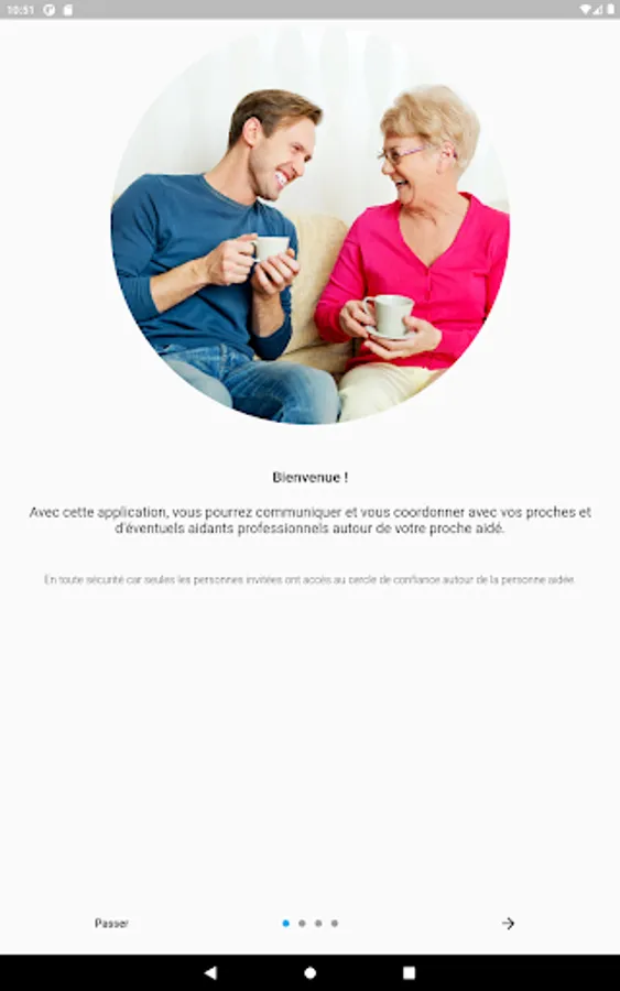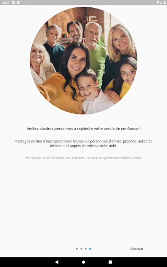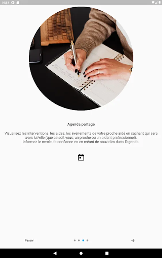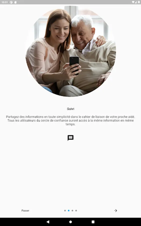 Coordination and communication "Caregivers" application to create a link and promote exchanges of all family and professional helpers (home helpers, family, health professionals, etc.) within the premises. a circle of trust around the person being helped.
