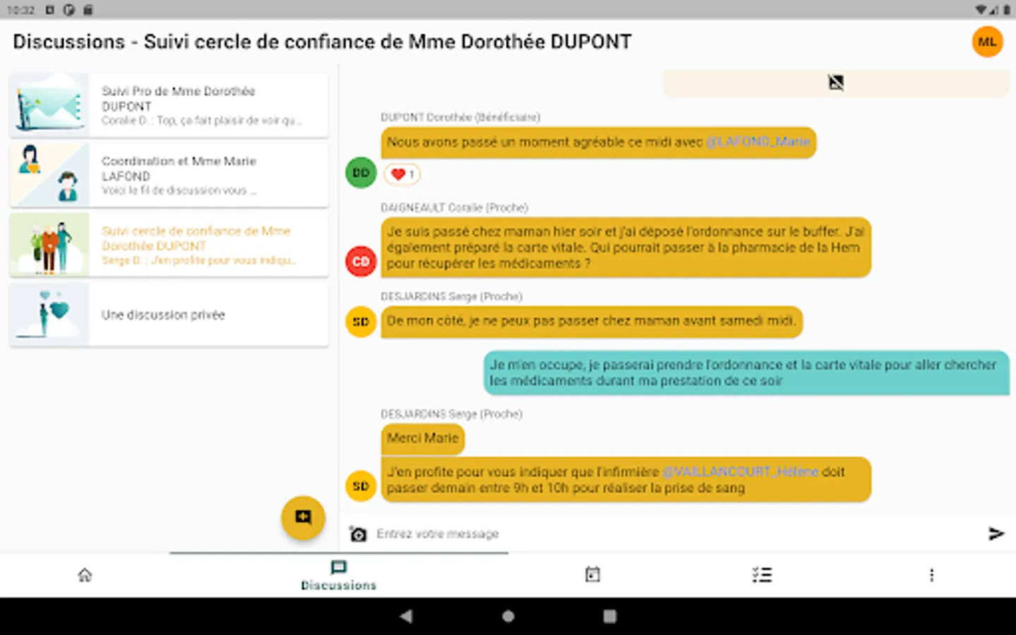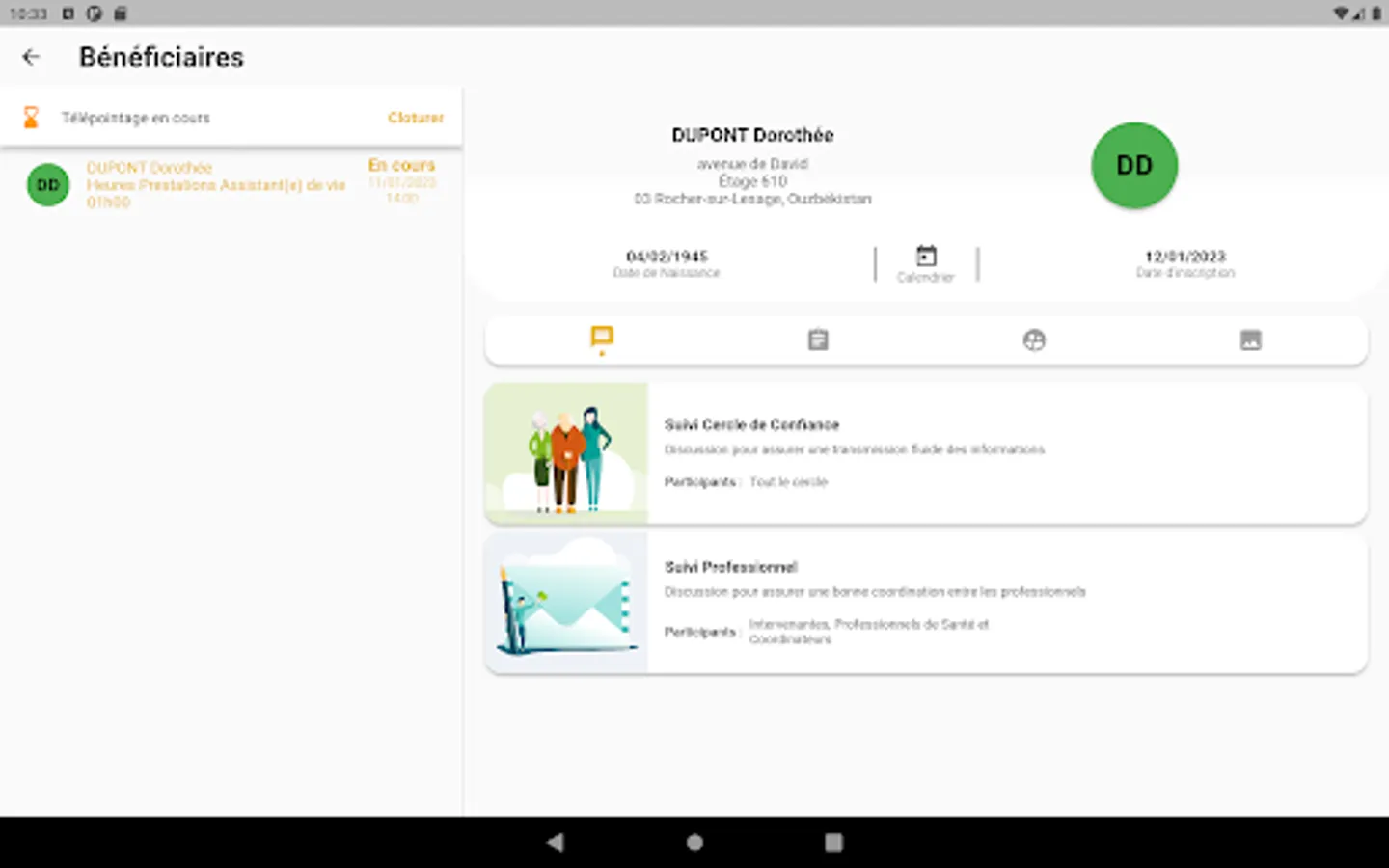 This tool promotes the follow-up of the interventions carried out and the communication within the course of care. It can be consulted and informed by all the professionals who work at your home, but also by your family.