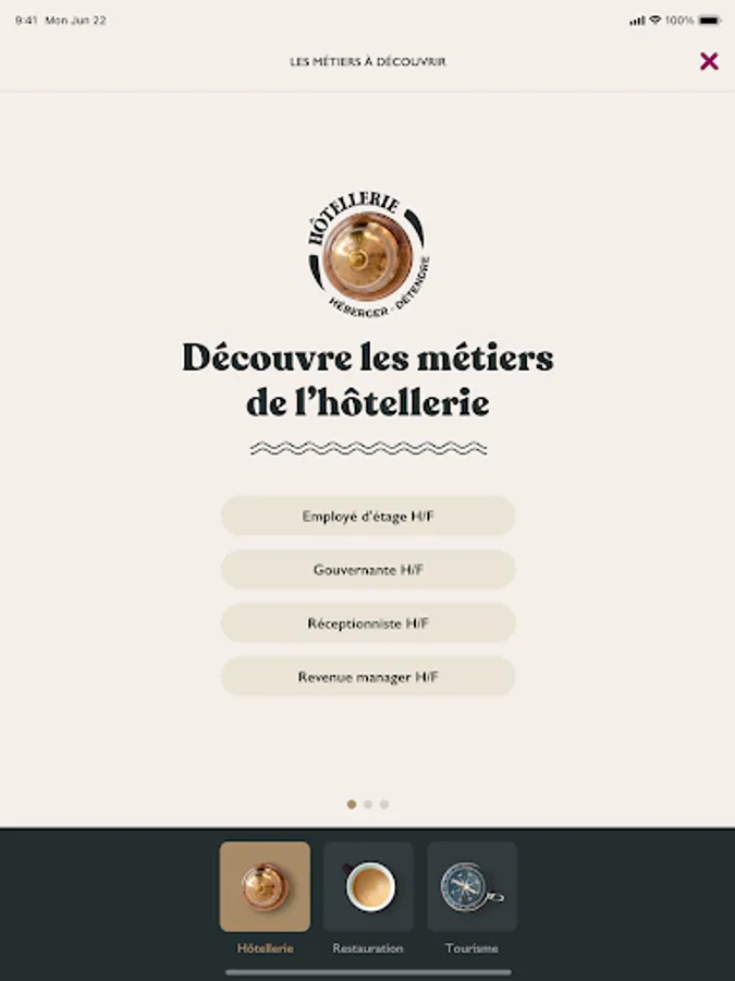 Discover in a fun way the professions and training of the hotel-catering-tourism sector in Center-Val de Loire with the application A profession à la clef.