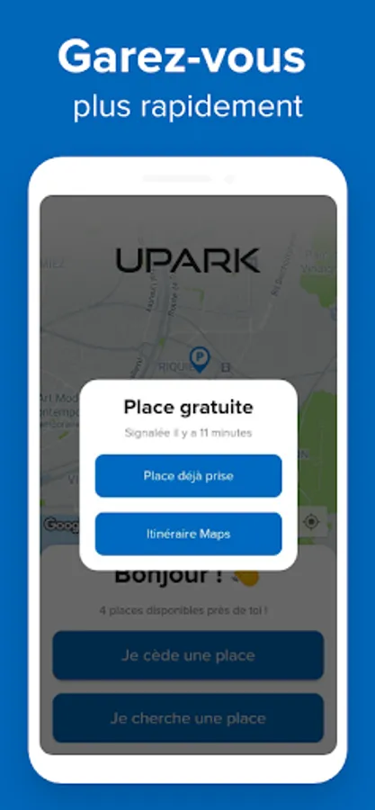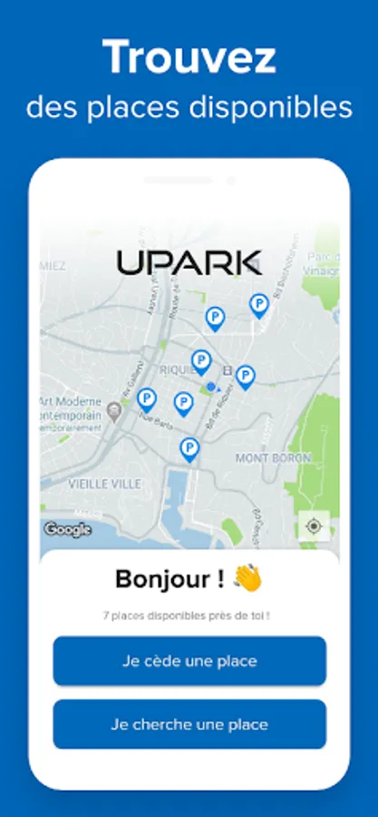 UPARK is an application that helps users in cars to park and find parking spaces much faster.