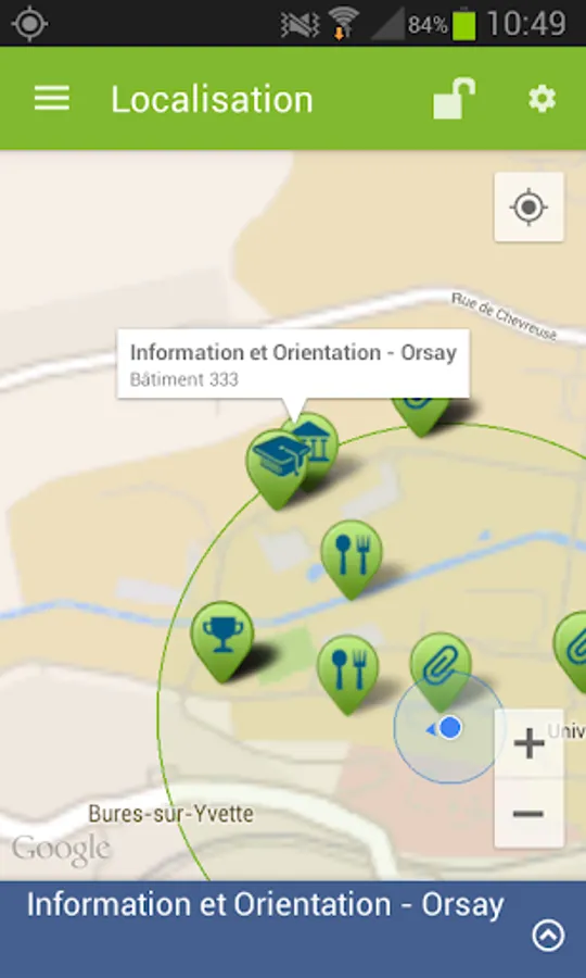 · Find a person or a service in the establishment directory and contact him directly from your mobile