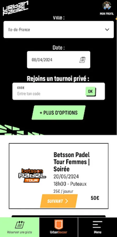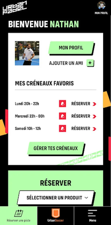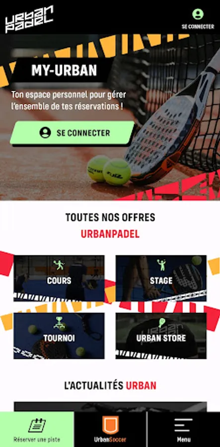 The application offers a quick and concise overview of the different products offered by UrbanSoccer and UrbanPadel, adapted to all sports profiles.
